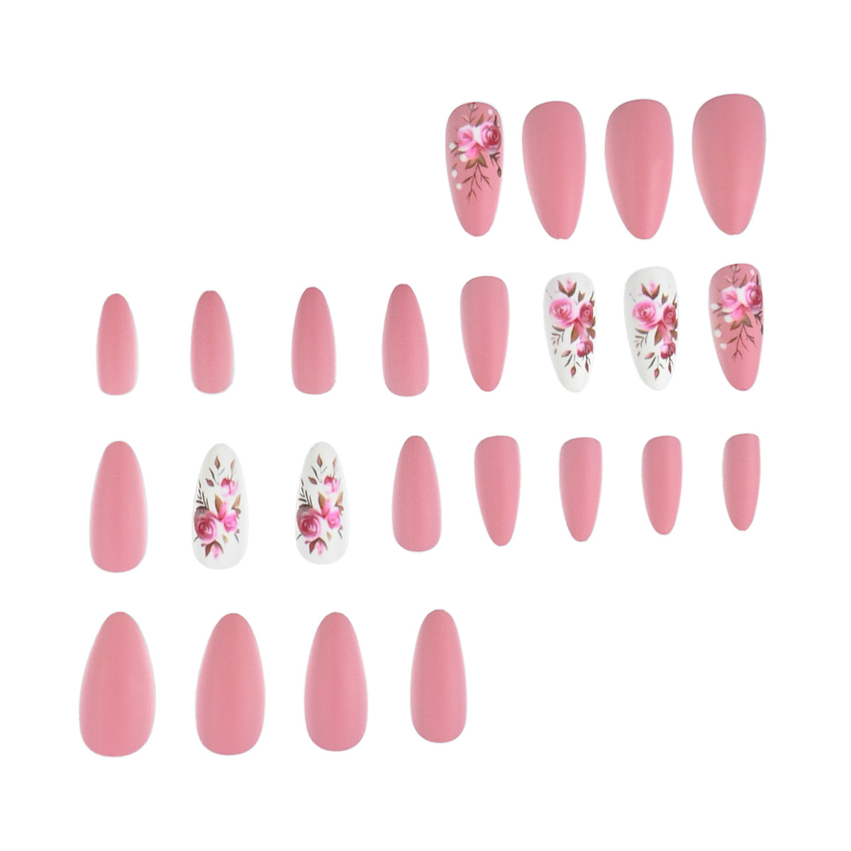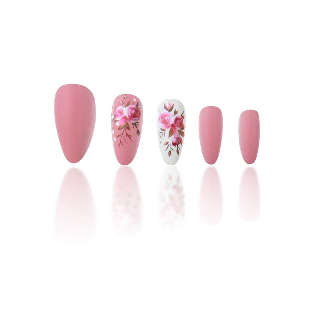 Pink Floral Matte Nails